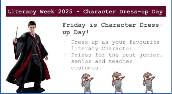 Costumes at the ready? Don’t forget that Friday is Character Dress-Up Day! Come on. Join the fun