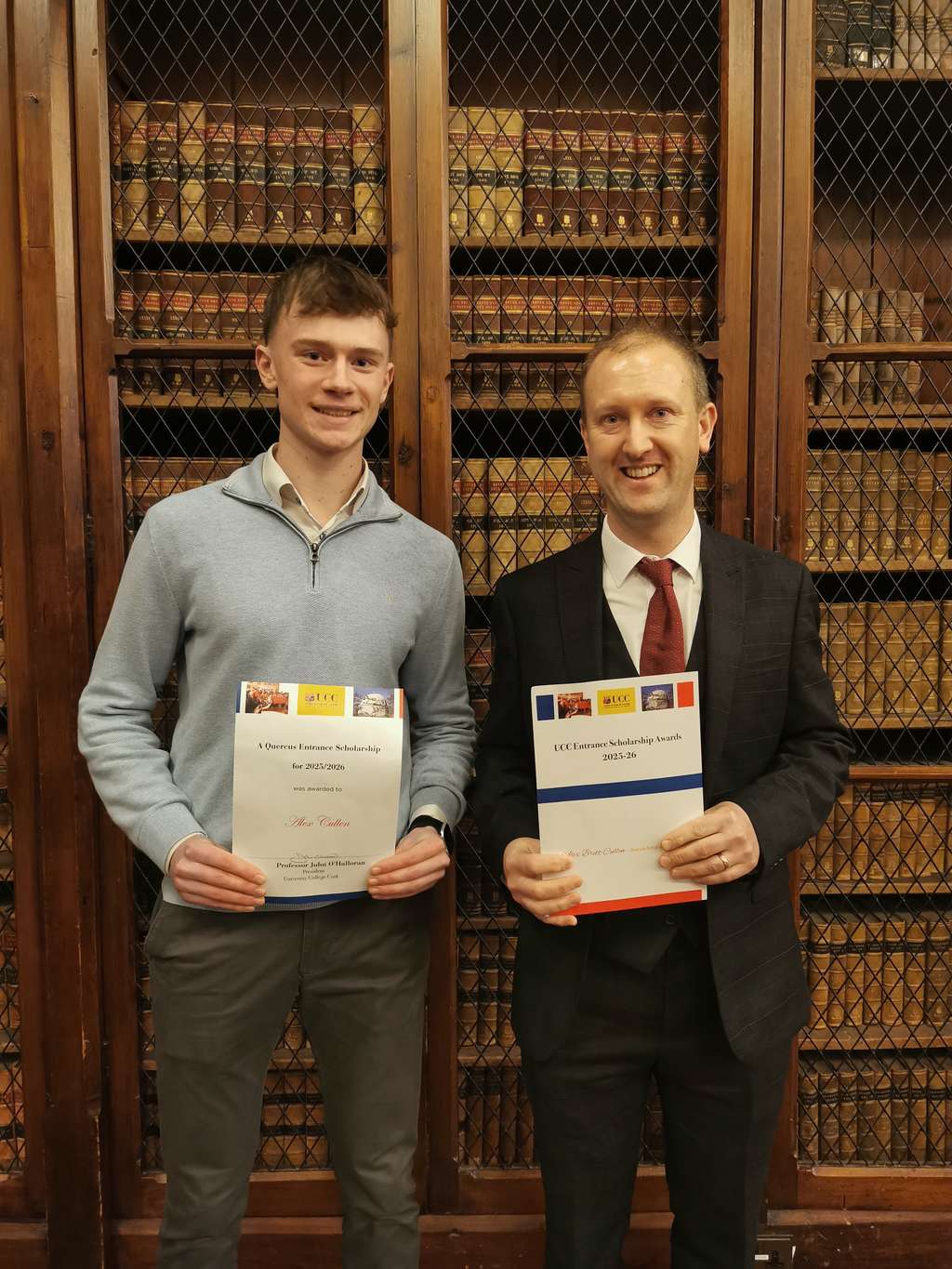 We are delighted to announce that Alex Cullen (Leaving Cert 2025) has been awarded the Quercus Entrance Scholarship in the College of Medicine and Health at University College Cork. This scholarship recognises exceptional Leaving Certificate achievement and academic potential at the point of entry to university. Alex, who is now studying dentistry, received the award at a UCC ceremony on 3 December. He was joined by his parents, while Dr Jonathan Murphy attended his alma mater on behalf of CBC Kilkenny.