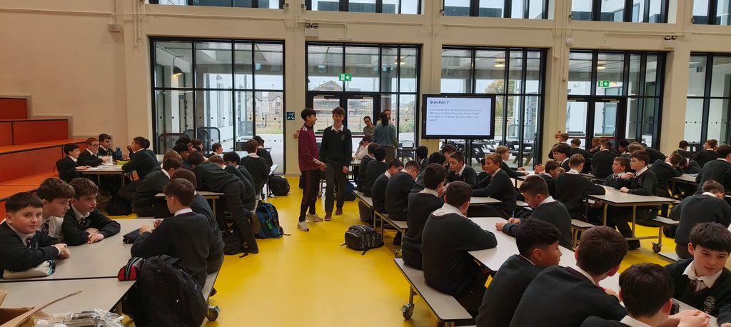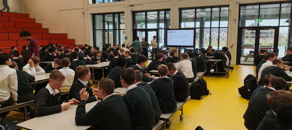 Our First Year students took part in an exciting Table Quiz in the Bialann today, organised and run by our talented Transition Year students. It was a fantastic event full of fun, teamwork, and mathematical challenges — well done to everyone involved!