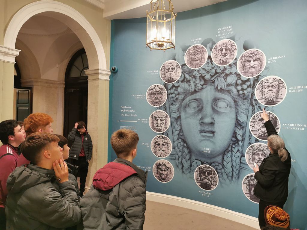 The tour continued to Dublin’s Custom House, where students explored its 18th-century architecture and rich historical layers. They examined the scars of the 1921 IRA attack still visible in the form of blackened pillars. Students learned how the city’s marshlands were drained in the 1780s to construct this neoclassical masterpiece and studied the intricate stonework representing Ireland’s great rivers. These sculptures captured how the Custom House symbolised colonial power and Ireland’s key trade networks before becoming a stage for the War of Independence.