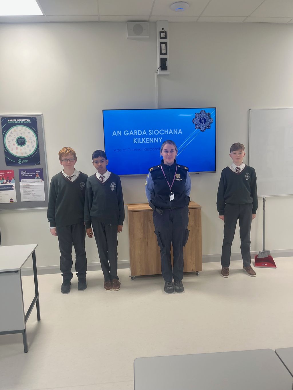 A huge thank you to Garda Michaela Noctor from the Kilkenny Community Policing Unit for delivering an engaging and informative presentation to our 1st Year students. The session covered the important topic of “Age of Criminal Responsibility”. We look forward to welcoming back the Community Policing Unit soon to speak with the rest of our year groups.